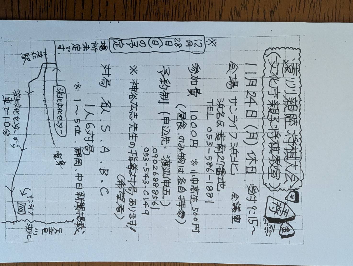 次回は12月28日(日)グリーンアリーナ(浜北総合体育館)第2第3会議室で開催します。