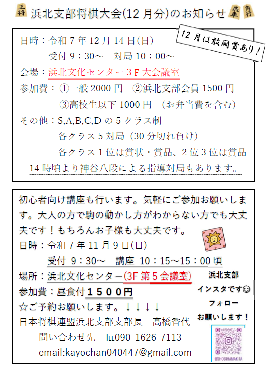【お問い合わせ】 日本将棋連盟 藤枝支部 メール:fujieda.shogi.bo.2024@gmail.com X(旧Twitter):@Fujieda_shogi