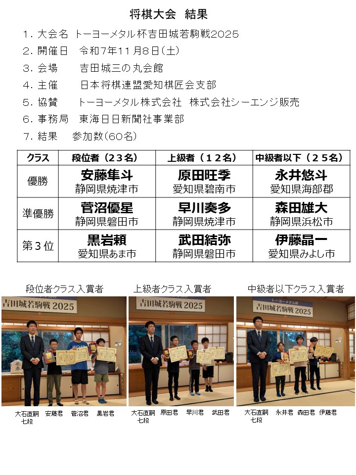 2025年11月2日(日)に開催された藤枝支部月例会の結果を報告します。